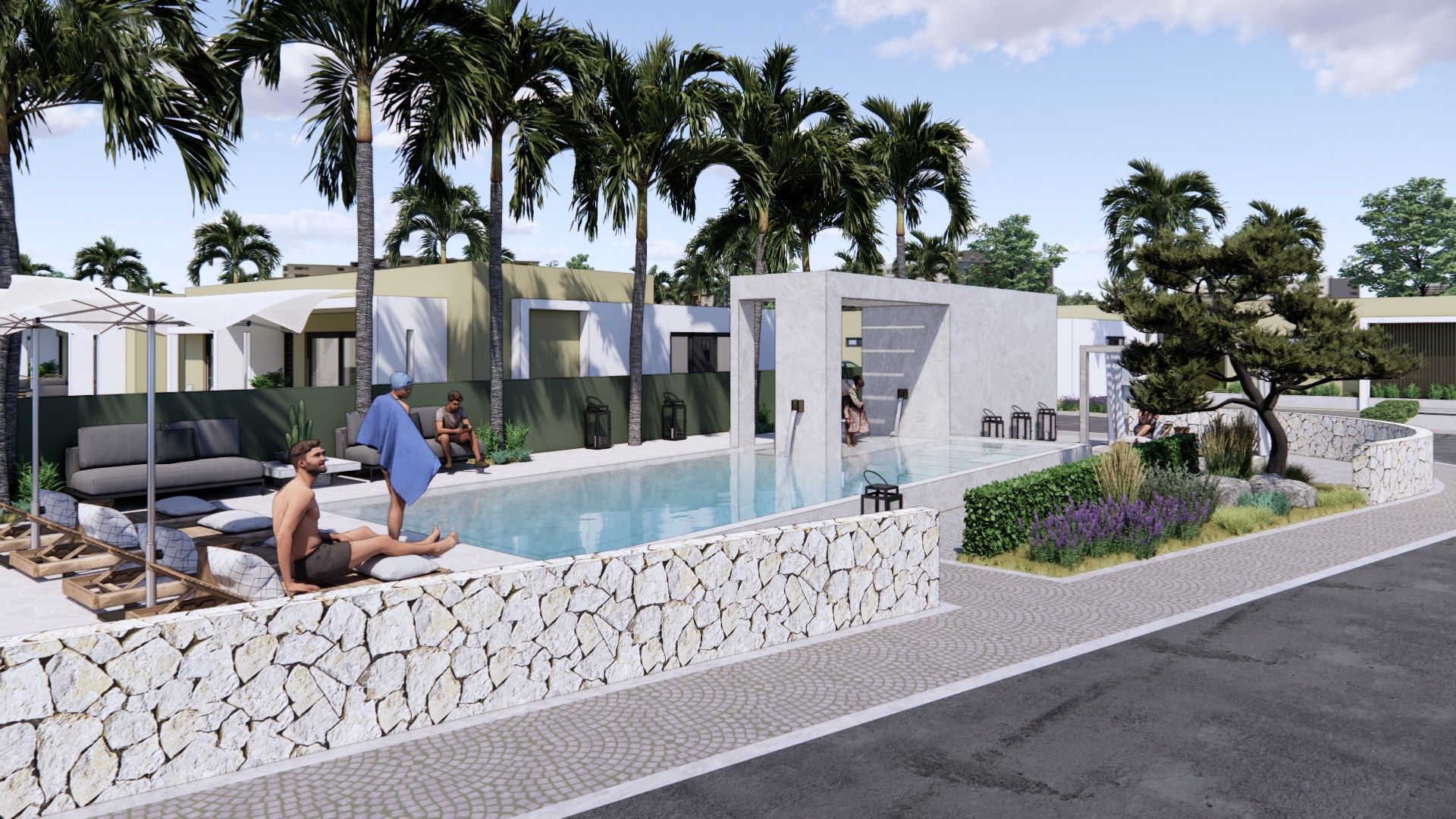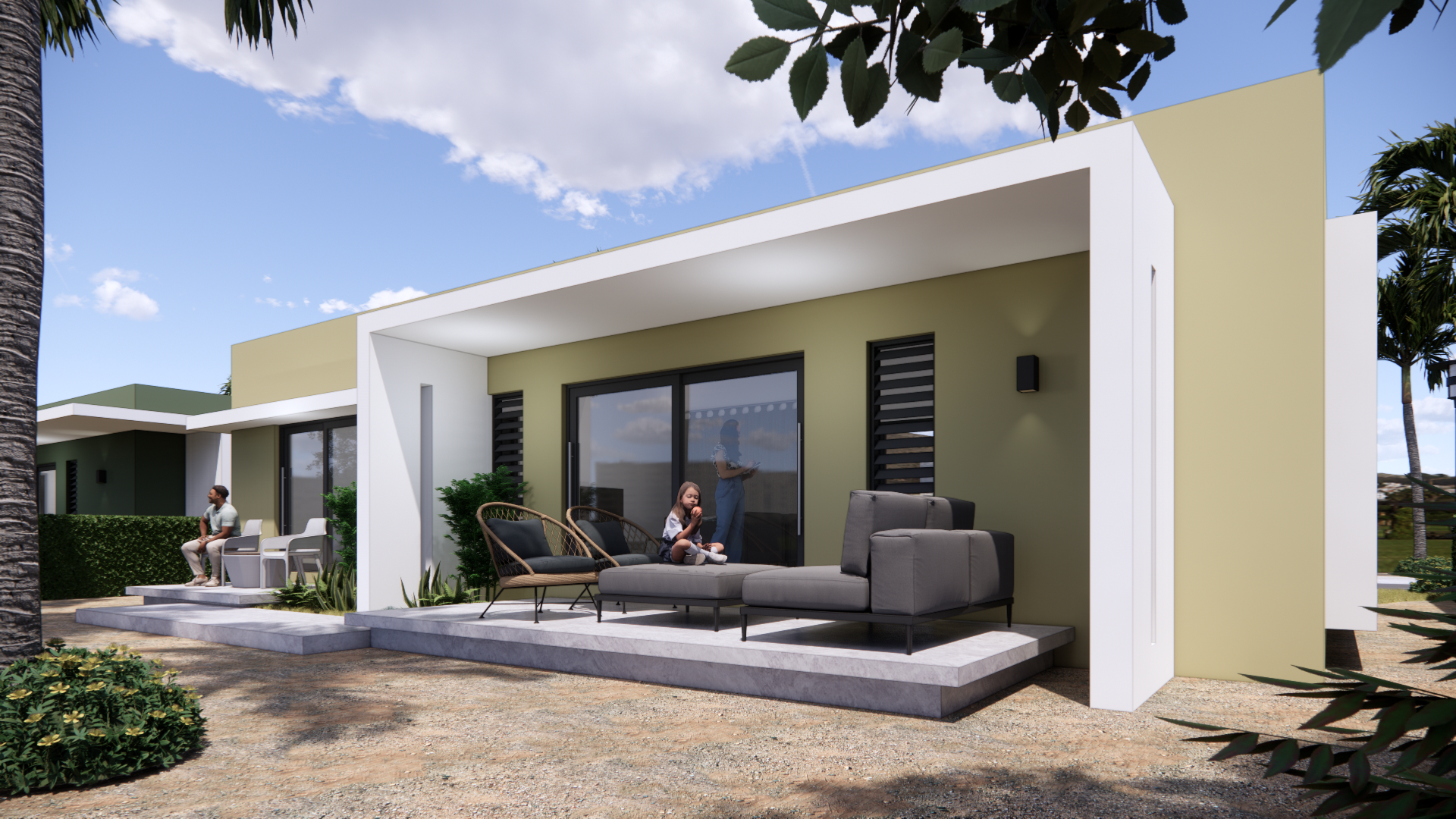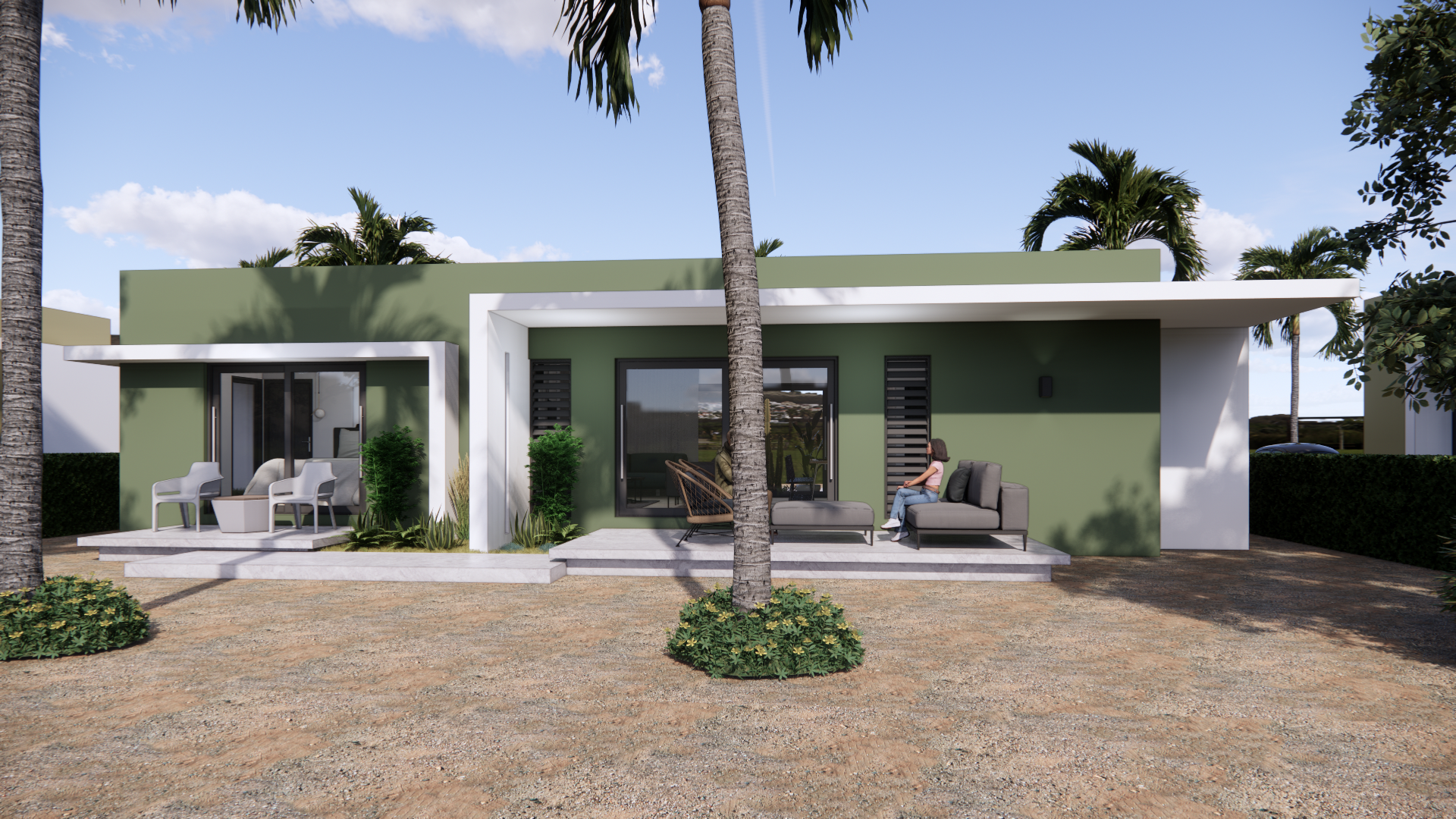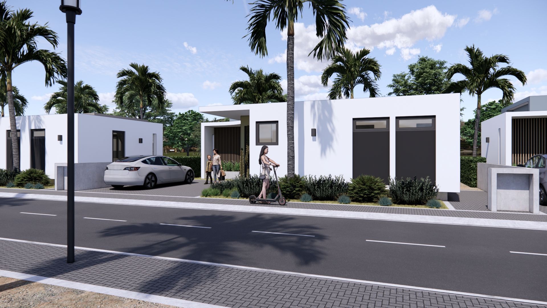Novaura Garden comprises a total of 30 single-family homes, including 15 two-bedroom, two-bathroom houses, as well as 15 three-bedroom, two-bathroom houses. Each home comes with two designated parking spaces and ownership of the private lot. The resort features a digital entrance gate with security cameras, additional emergency exit, and a gated community with tall perimeter fencing. Novaura Garden feature a modern aesthetic typically found in higher-end properties. The flat concrete roofs are ideal for solar panel installation.